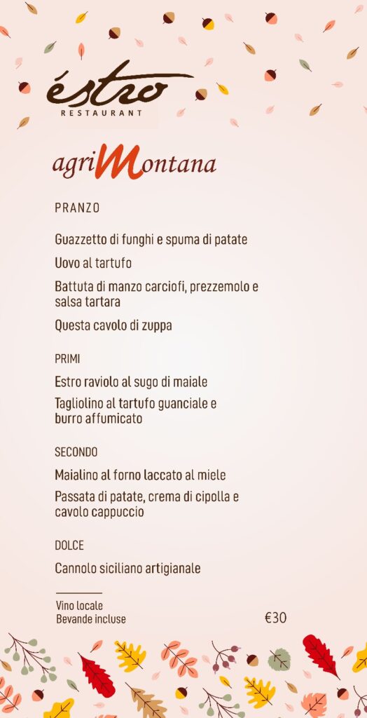 AGRIMONTANA 2020 - I MENU' DI ESTRO' RESTRAURANT